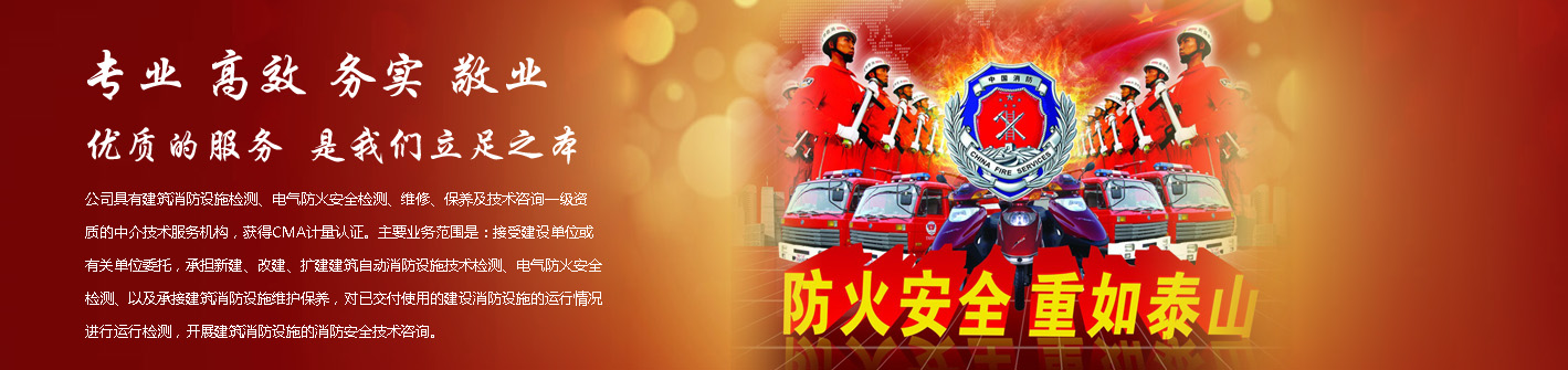 公司具有建筑消防設施檢測、電氣防火安全檢測、維修、保養(yǎng)及技術咨詢一級資質(zhì)的中介技術服務機構,獲得CMA計量認證。主要業(yè)務范圍是:接受建設單位或有關單位委托,承擔新建、改建、擴建建筑自動消防設施技術檢測、電氣防火安全檢測、以及承接建筑消防設施維護保養(yǎng),對已交付使用的建設消防設施的運行情況進行運行檢測,開展建筑消防設施的消防安全技術咨詢。公司設辦公室、總工辦、財務部、檢測部、維保部等職能機構,擁有一