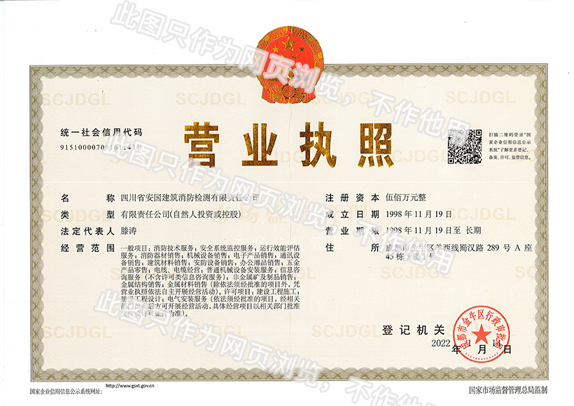 四川省安國建筑消防檢測有限責任公司,成立于1998年,經(jīng)四川省公安消防總隊批準,工商部門注冊的獨立法人單位。